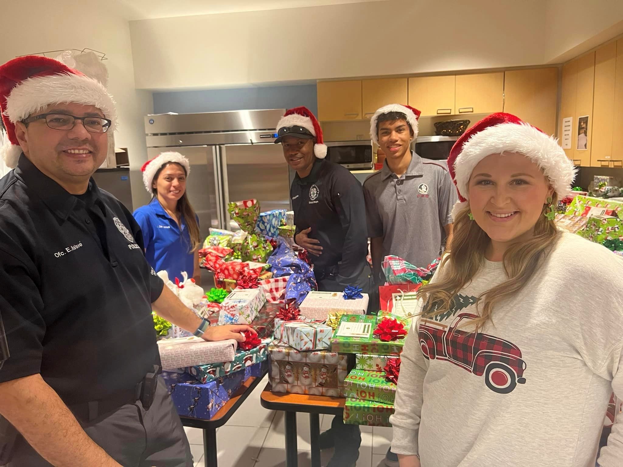 In Orlando, a host of police officers didn’t only put on a red/white felt Santa hat and bellow Ho-ho-ho, they also performed recon in advance of the Christmas party, purchasing gifts and trinkets for every youngster in the group.