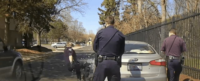 Aside from what seems like the obvious safety concern, what exactly are you going to do when you get to the vehicle? What you see is officers struggling to get inside, placing themselves near a possible mobile vehicle threat, holding a gun and one hand and attempting to do something else with the other, standing at a tinted windshield they can’t see in to, and attempting to break the vehicles window with their firearm.