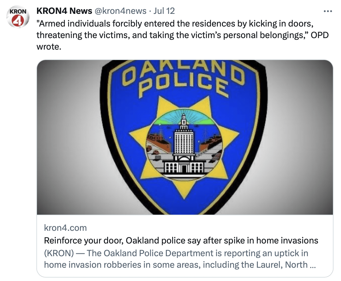 Oakland police officers are still investigating the home invasions, and OPD did not say if any arrests have been made. In response to the crime wave, the Oakland Police Department released tips residents can use to make their homes safer, and reduce the risk of a break-in.