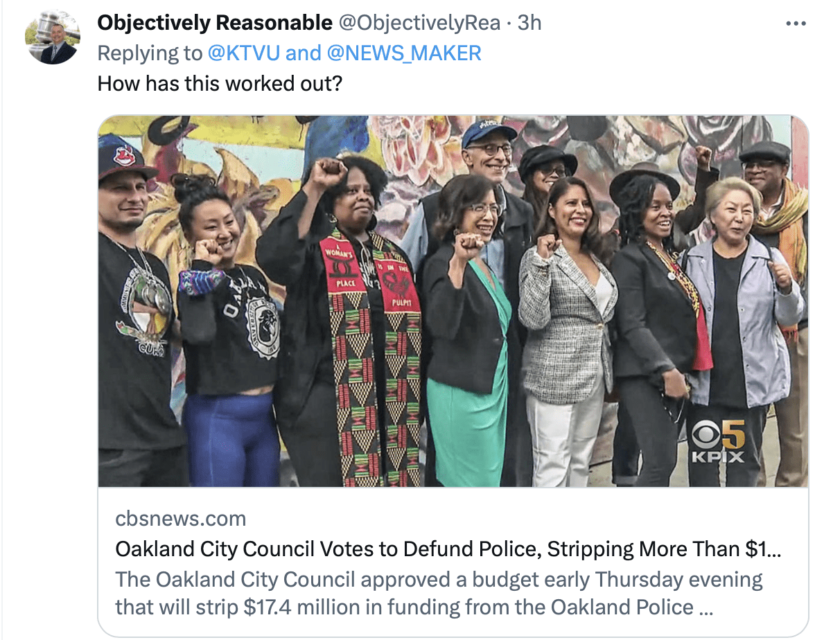 “Failed leadership, including the movement to defund the police, our District Attorney’s unwillingness to charge and prosecute people who murder and commit life-threatening serious crimes, and the proliferation of anti-police rhetoric have created a heyday for Oakland criminals,” the letter states.