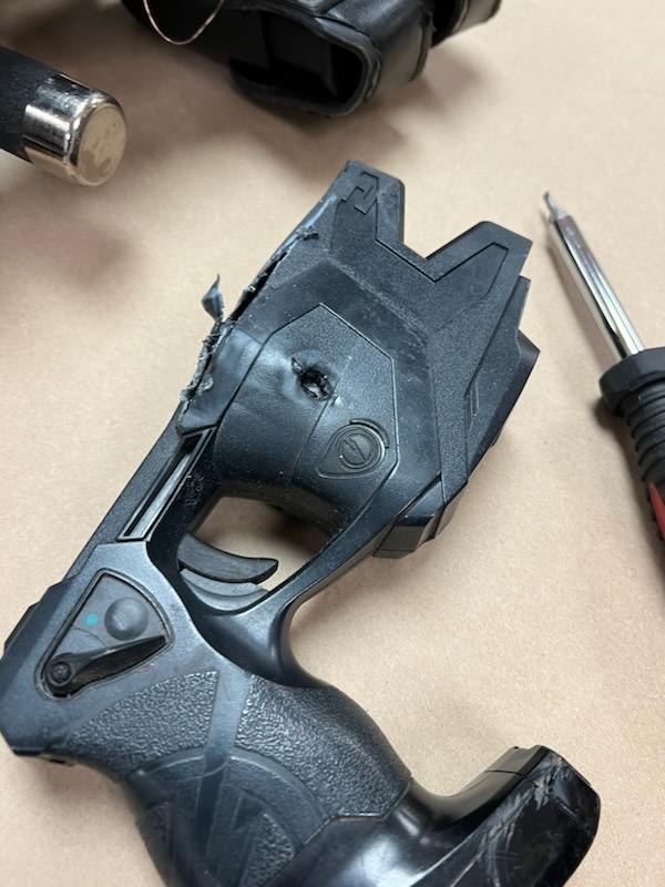 PUNA, Hawaii — A Hawaii police officer narrowly avoided injury when a bullet hit his holstered TASER during a foot pursuit.