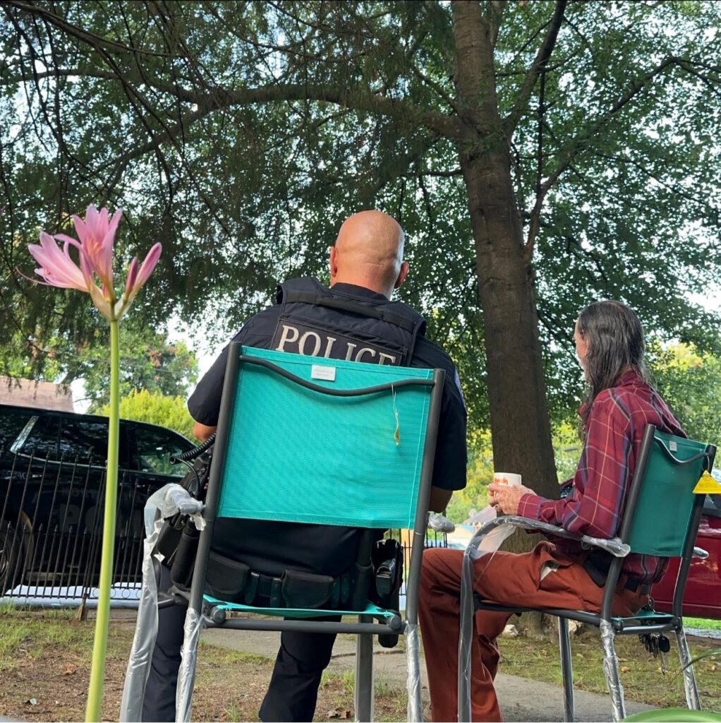 That says everything about souls relishing kindred spirits of sorts. The image portraying such a humanitarian gesture and the heartfelt conversations held between them can be found on his Instagram page, around September 20 or so. There, you will see what I have highlighted herein…and a bevy of other phenomenal police work on behalf of many.