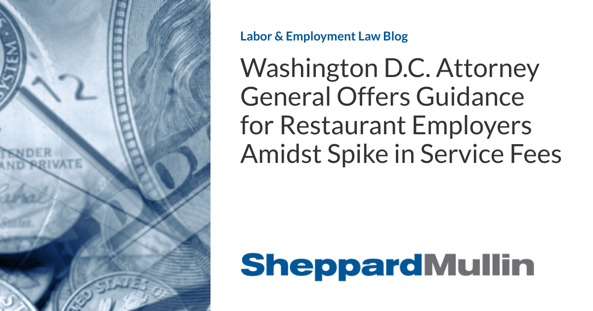 To that end, on August 9, 2023, Washington D.C.’s Attorney General released guidelines reminding restaurants of their legal obligations to properly disclose fees to customers. As part of its guidance, the Attorney General provided several examples of non-compliant disclosures, such as failure to adequately disclose whether a service fee will be used for tips, or if the fee will indirectly support workers by going toward base wages. The guidance further notes that businesses should indicate which portion of the fees will be used for what purposes, if the fees will be used for more than one purpose.