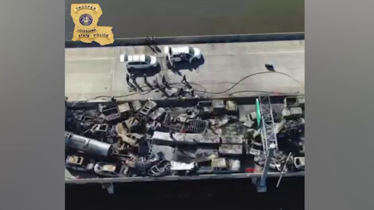 Louisiana State Police showed photos of the pileup, which resembled a war zone due to the fire and destruction.