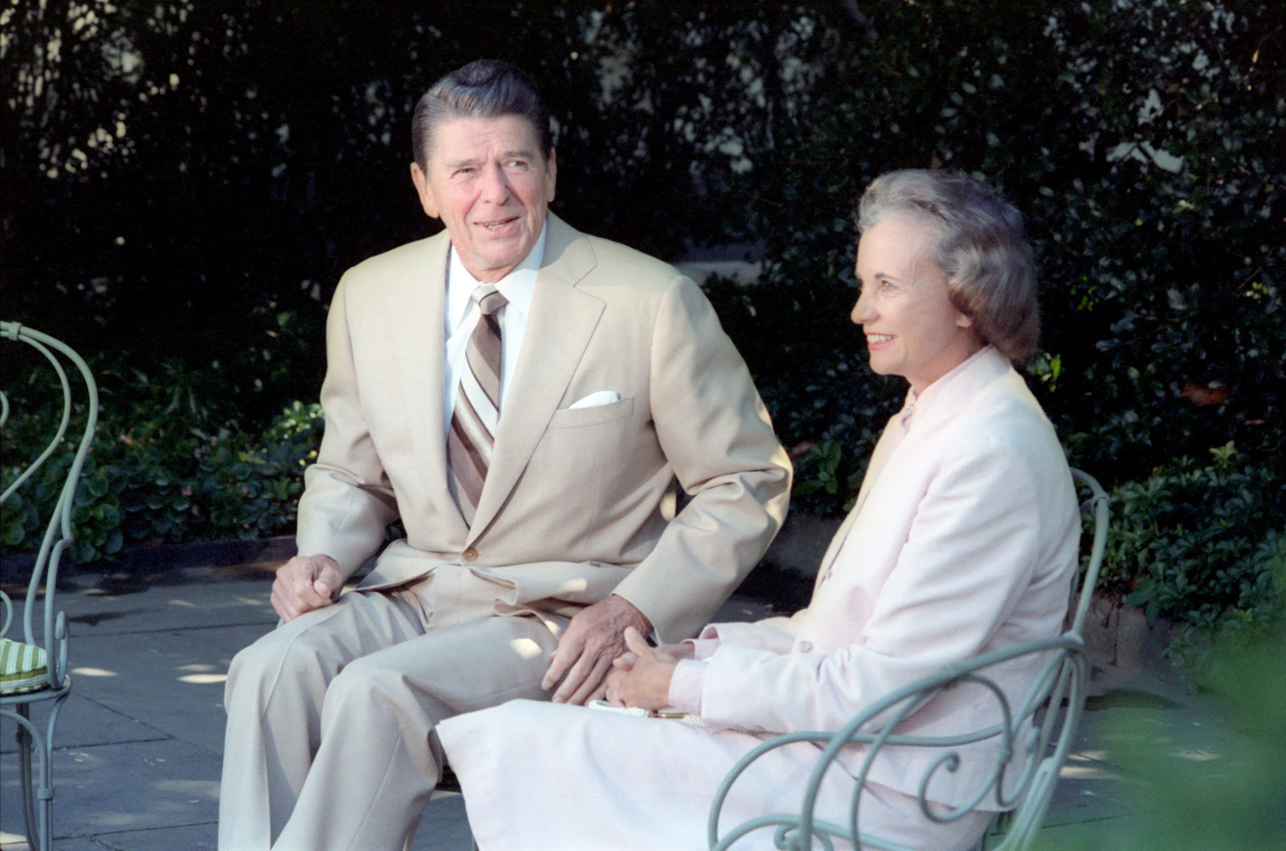 President Ronald Reagan with his Supreme Court nominee Sandra Day O’Connor at the White House in 1981. (White House Photographic Collection via Wikimedia Commons)