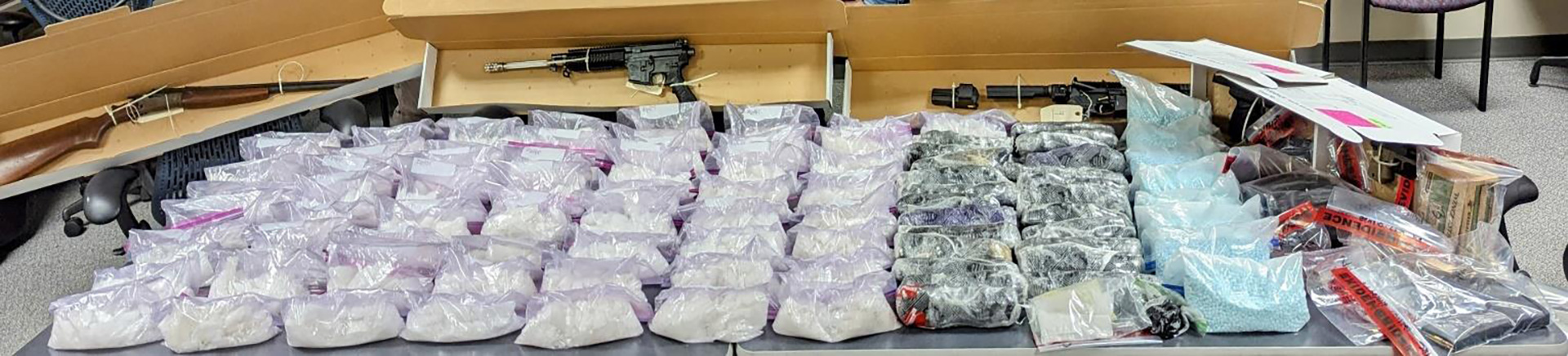 The ensuing arrest of the suspect paved the way for a thorough search, resulting in the seizure of a huge cache of illicit substances. A total of 83 pounds of methamphetamine, approximately 87,000 fentanyl pills and nearly half a pound of brown tar heroin, with an estimated street value of $550,000, were confiscated from the suspect’s possession.