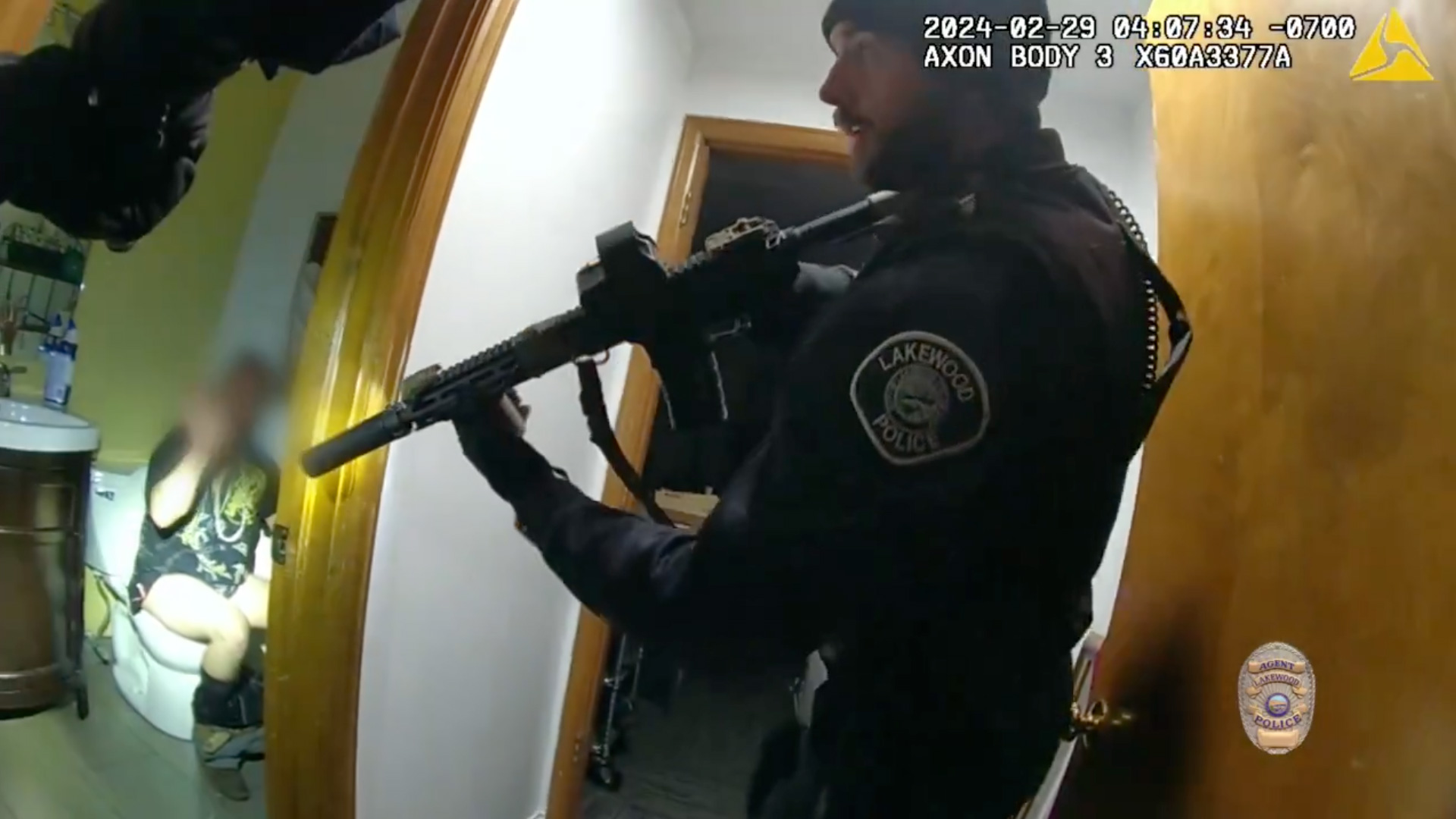 The incident, which took place on February 29, was captured on camera by the Lakewood Police Department.