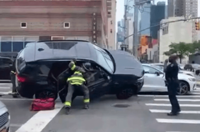 FDNY officials said the driver of one of the vehicles involved in the collision “hit the gas,” causing the SUV to lurch forward and fall.