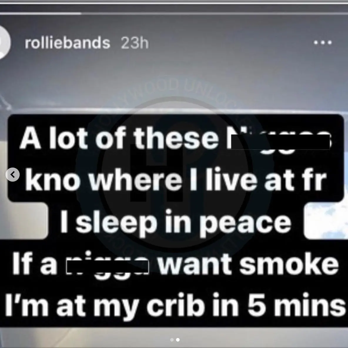 “A lot of these n****s know where I live at fr,” the rapper wrote on his Instagram Story, according to HipHopDX. “I sleep in peace. If a n***a want smoke I’m at my crib in 5 mins.”
