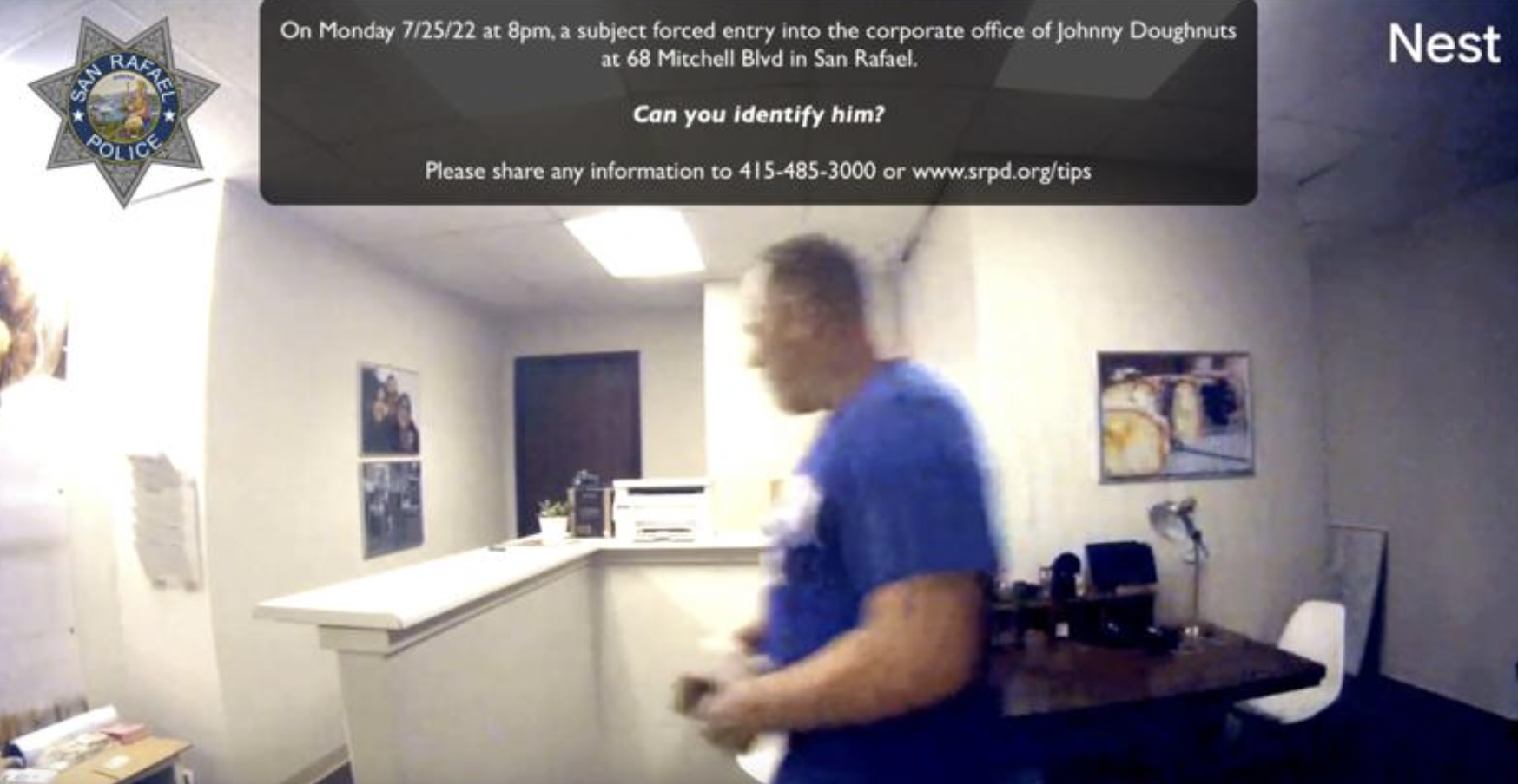 San Rafael police are seeking the public’s help to identify the burglar, who used an unknown tool to “manipulate” the office’s doorknob and get inside around 10 p.m., according to Lt. Dan Fink. The crime was reported to police on Monday.
