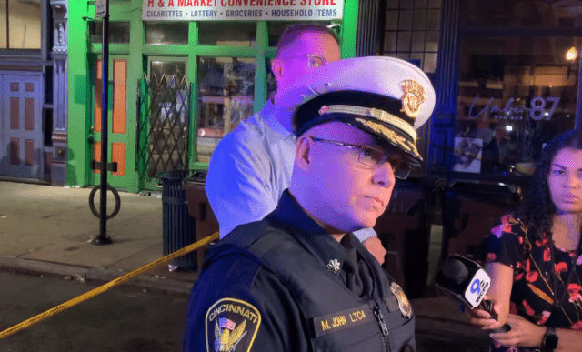 John says an officer “discharged one round” at the suspect who was “actively shooting the firearm at that time” as the gunman ran east toward Sycamore Street. It’s not known if the officer’s bullet struck the individual who is still being sought early Sunday, FOX 19 reported.