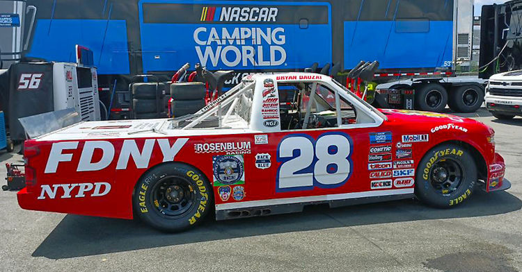 The offending decal, among others that adorn the #28 FDNY Racing truck. (Photos courtesy of Jim Rosenblum and FDNY Racing via MetroSports Magazine)